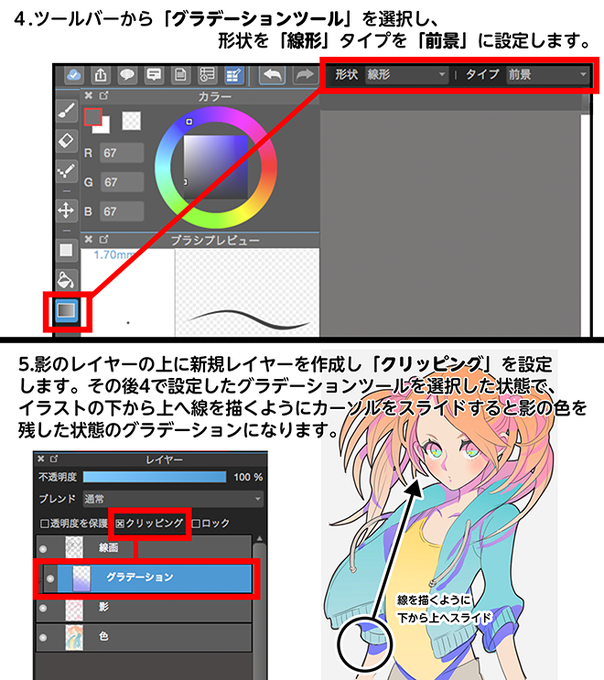 グラデーションツールをつかいこなす ツール設定 色塗り 7 By Clipstudioofficial Clip Studio Tips